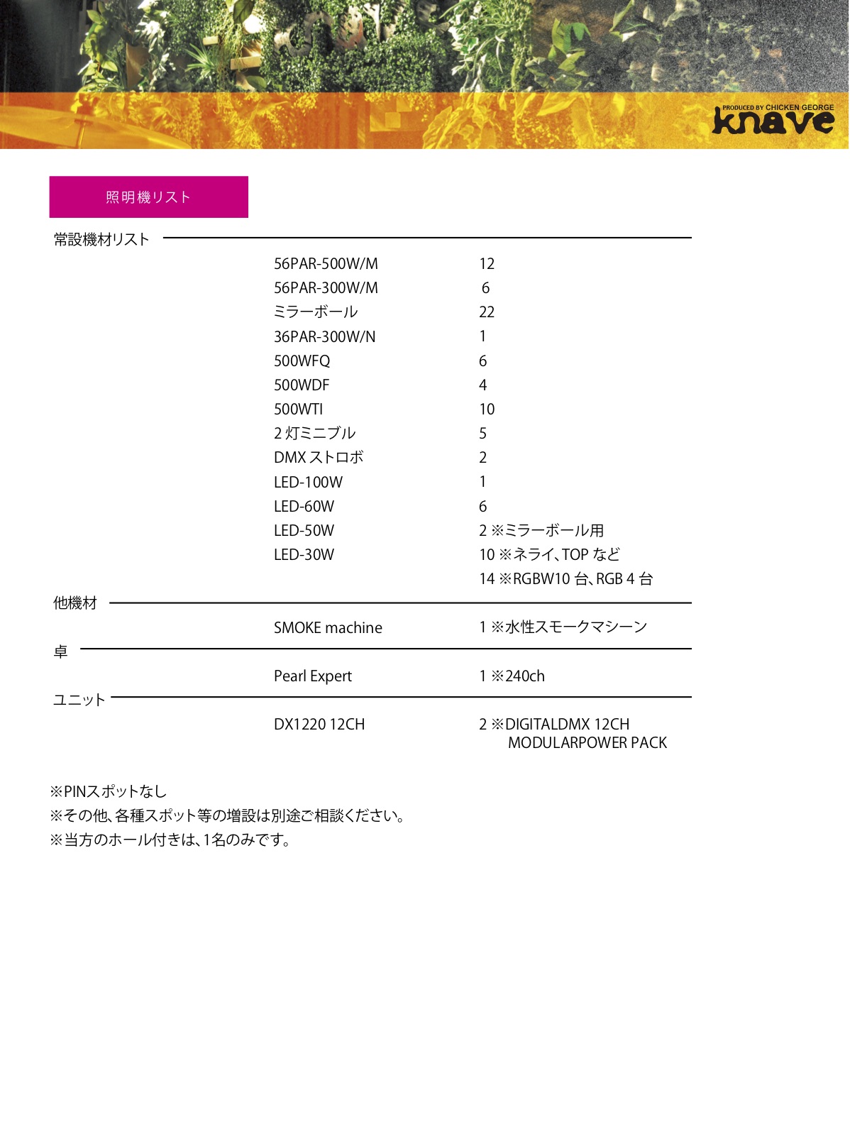 音響・照明機材等のお問い合わせ・資料ご送付先 06-6535-0691 info@knave.co.jp